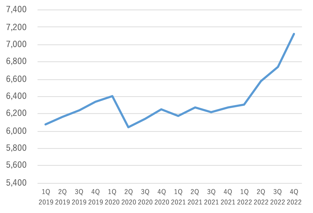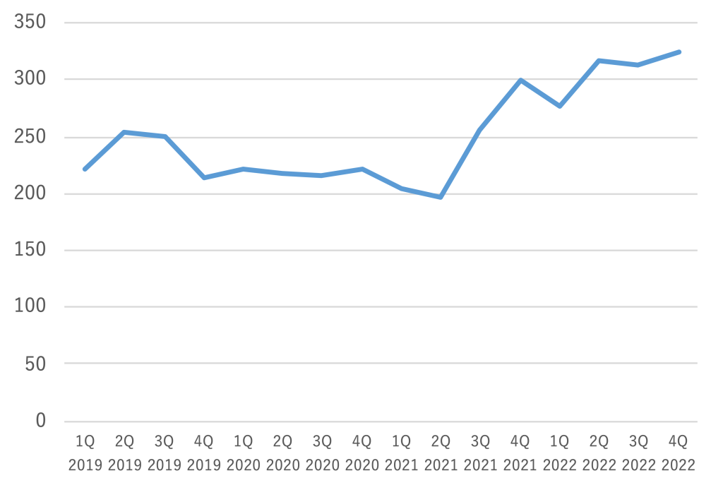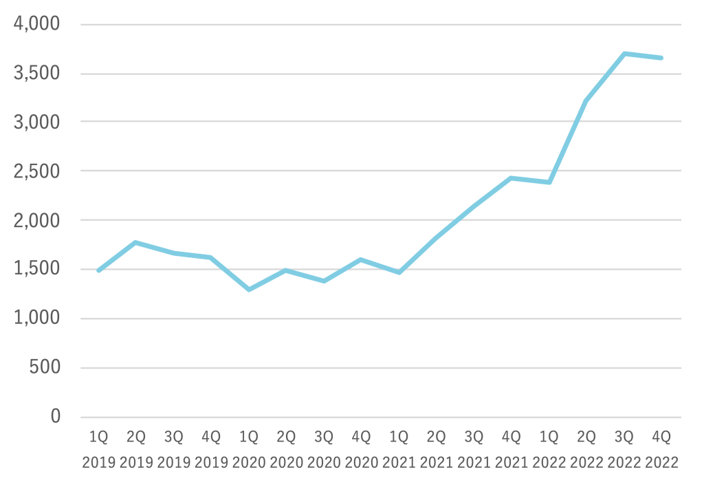 Figure 1-1 : Changes in the number of syphilis patients from 1Q 2019 to 4Q 2022 ( disease conditions only )