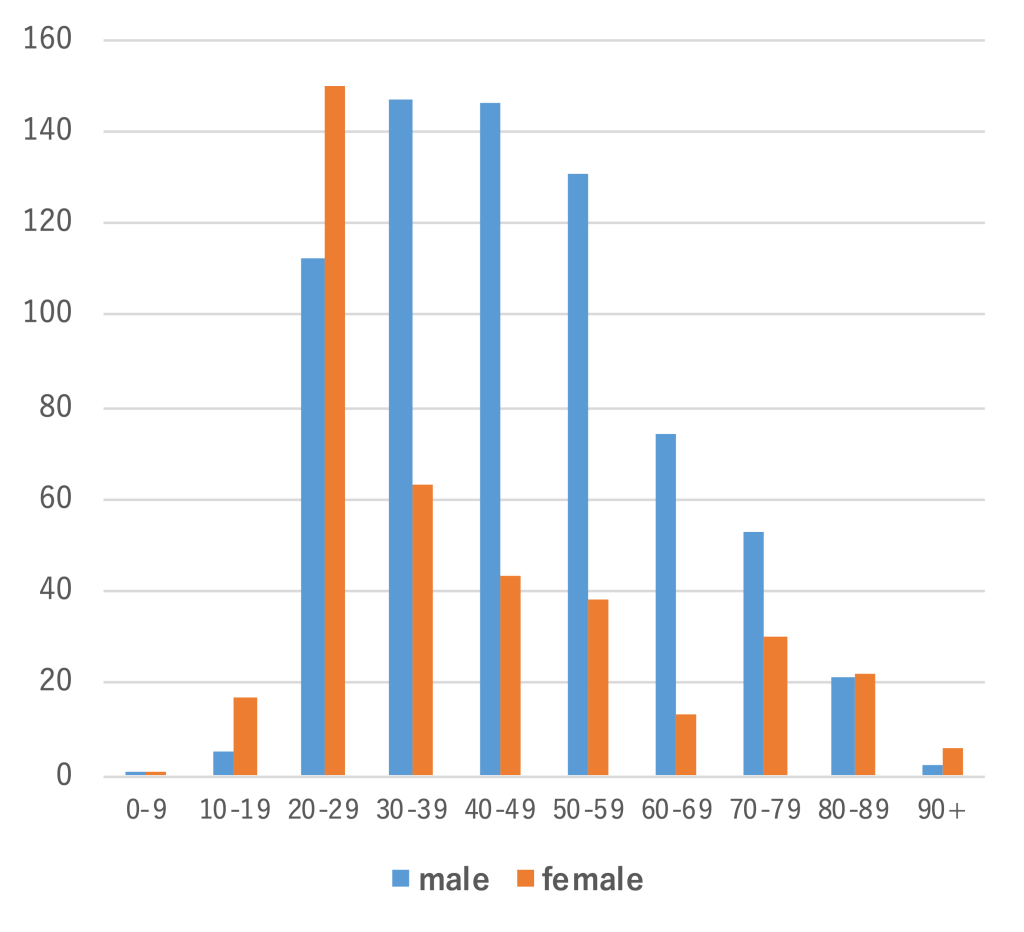 Although the number of patients continues to increase, Figure 2-2 shows that the majority of patients are men in their 20’s to 50’s and female patients in their 20’s in a similar trend as reported by the Ministry of Health, Labor & Welfare