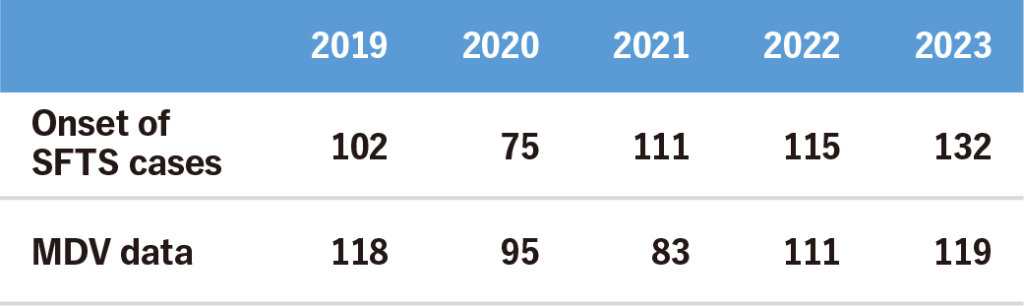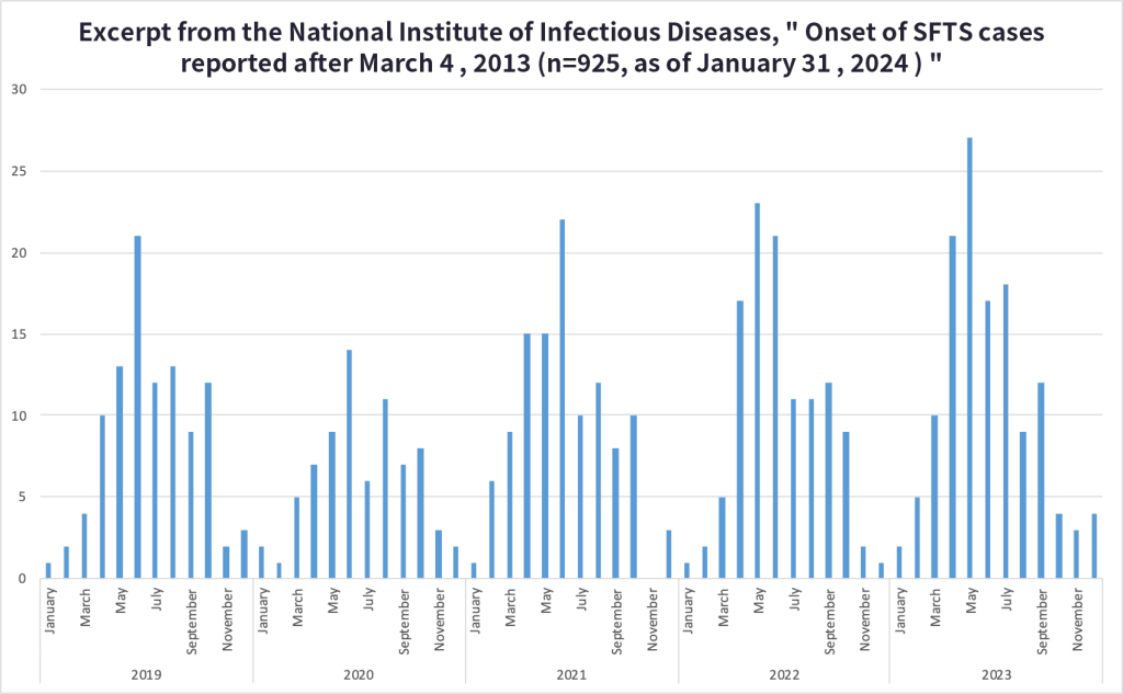 National Institute of Infectious Diseases “Onset of SFTS cases reported after March 4, 2013 (n=925, as of January 31, 2024)”