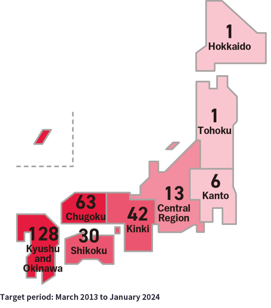 [Kyushu and Okinawa] Fukuoka Prefecture, Saga Prefecture, Nagasaki Prefecture, Kumamoto Prefecture, Oita Prefecture, Miyazaki Prefecture, Kagoshima Prefecture, Okinawa Prefecture