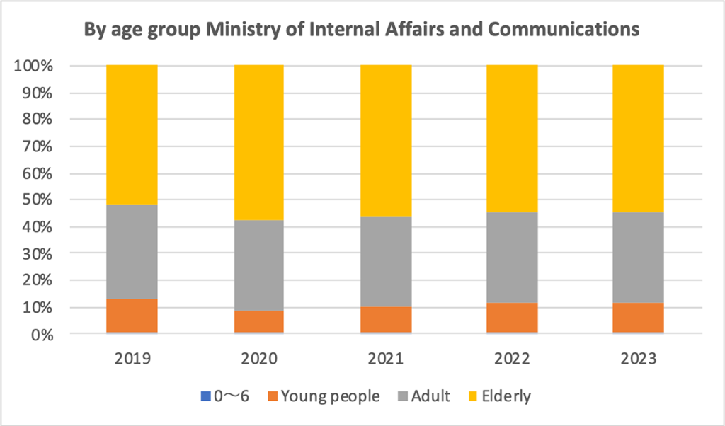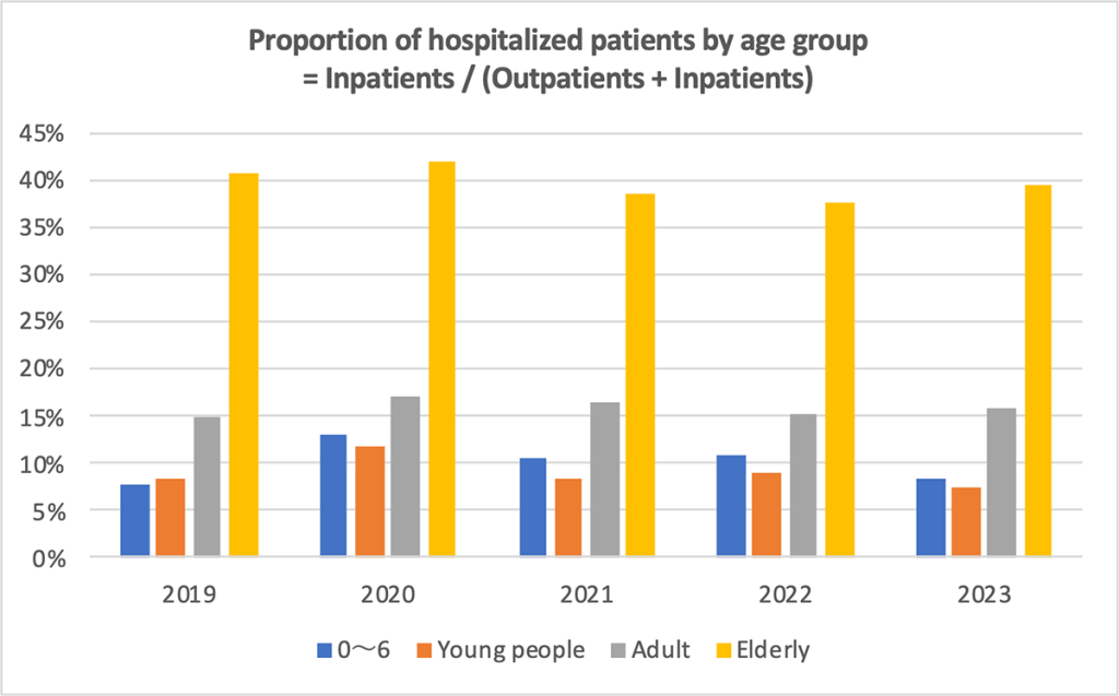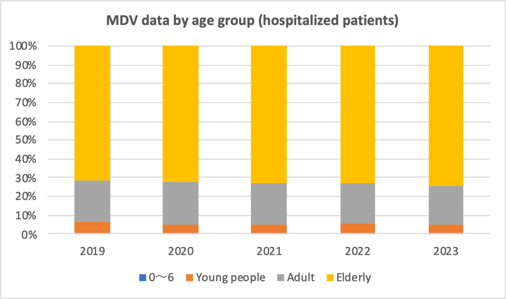 Next, we looked at the trends in MDV and the number of patients by age group according to the Ministry of Internal Affairs and Communications over the five-year period (January 2019 to December 2023).