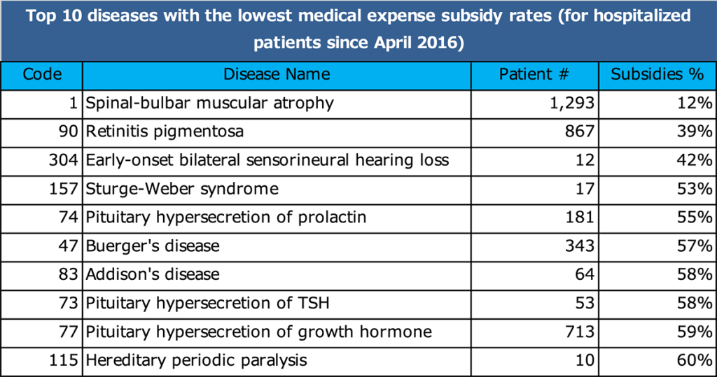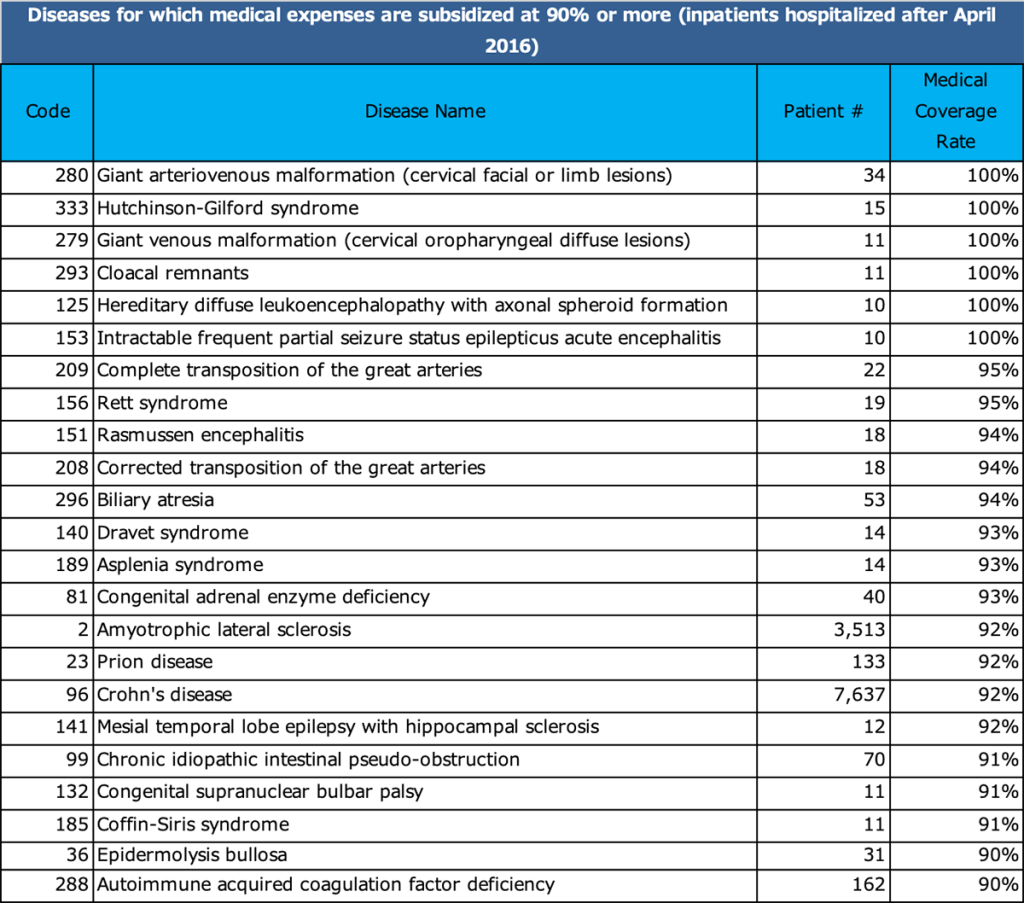 - Diseases with a medical expense subsidization rate exceeding 90% (Table 2).