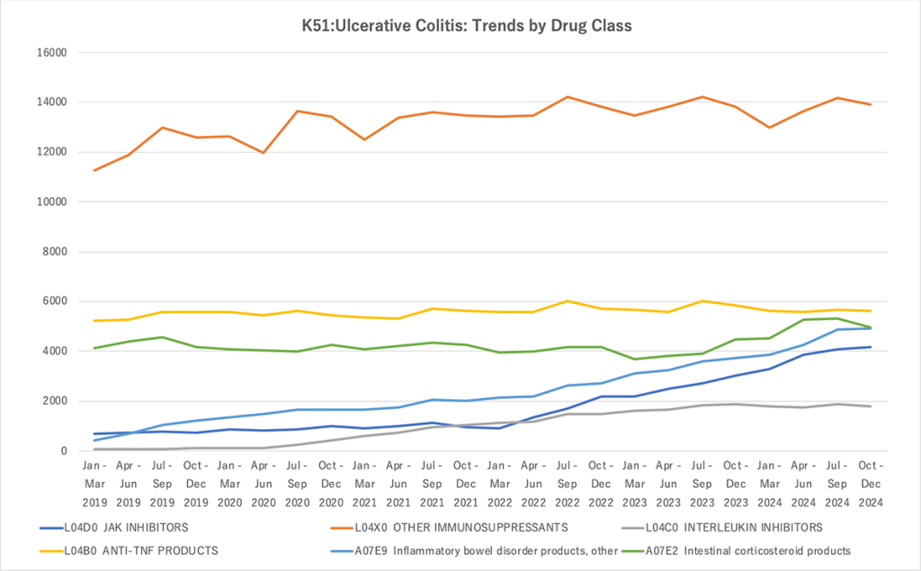Trends in Ulcerative Colitis Treatment Drugs by Category