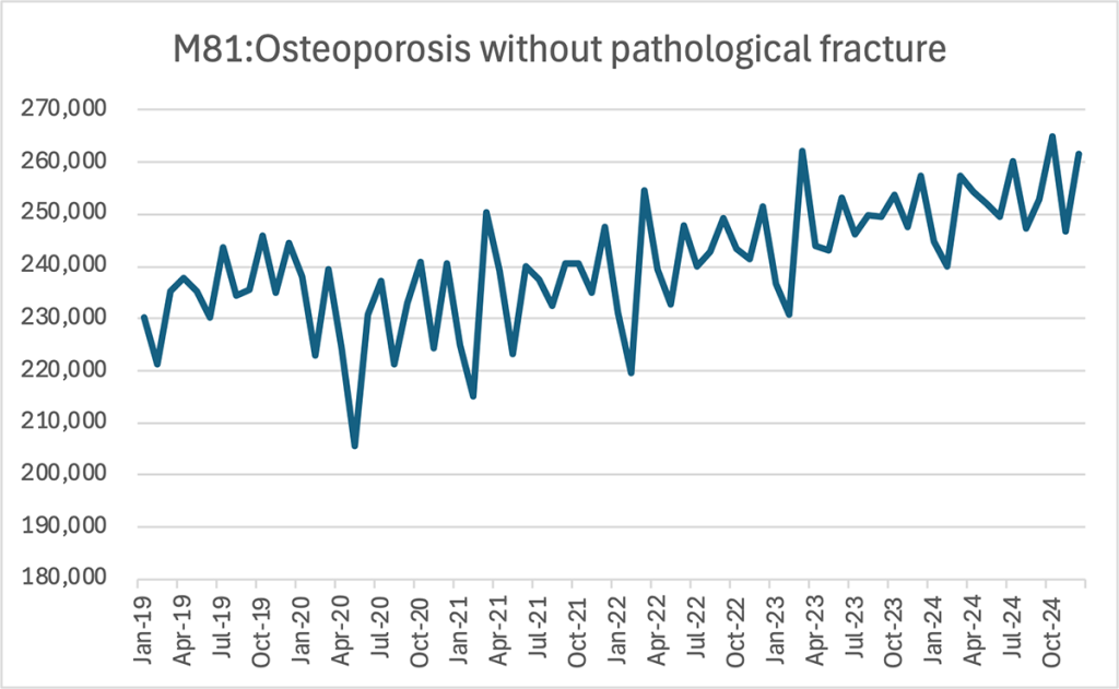 1. Monthly Trends in Osteoporosis (M81) Patient Numbers