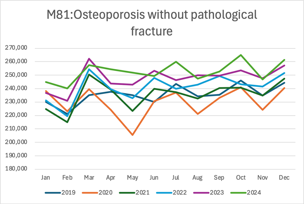2. Year-on-Year Comparison of Monthly Osteoporosis (M81) Patient Numbers